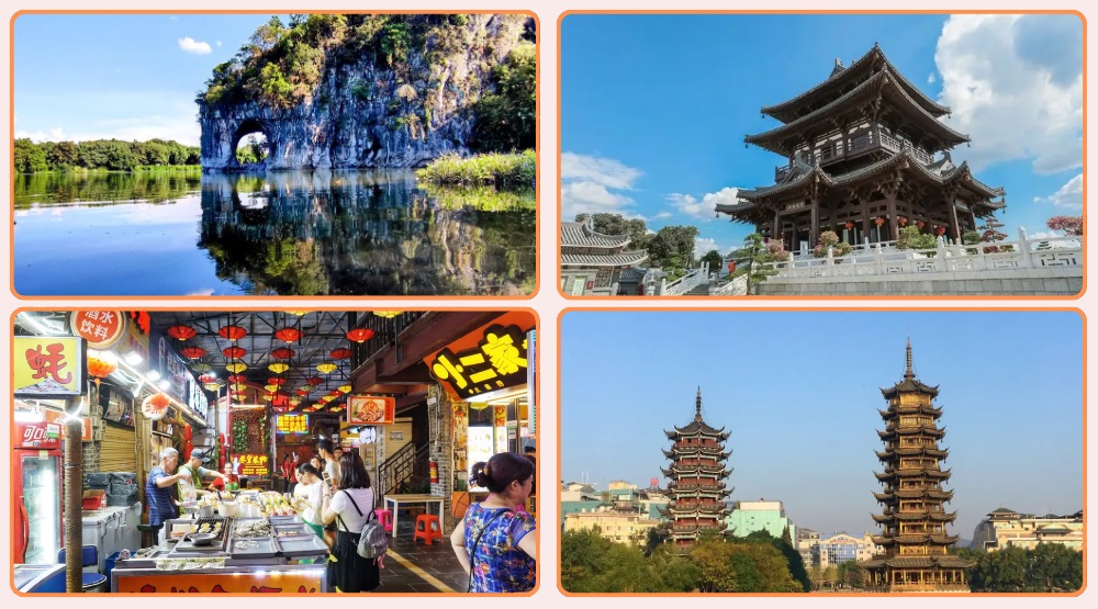 *暢遊 桂林城徽象鼻山、必打卡“地球村”陽朔西街 、桂林明清時期古街【東西巷、正陽步行街】、金銀雙塔.逍遙樓
